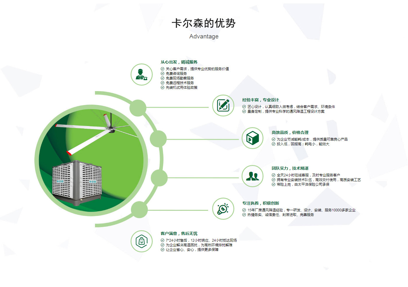 ??晉江市卡爾森機電設備有限公司是一家集設計、制作、銷售、安裝工業(yè)通風設備、中央空調、節(jié)能環(huán)保空調、脈沖除塵設備、環(huán)境凈化工程、等環(huán)保工程企業(yè)。并提供環(huán)境影響評價、環(huán)保工程總承包、環(huán)保工程設計、環(huán)保工程運營、環(huán)保工程成套設備等一站式服務。公司一直誠心服務于工業(yè)廠房的通風設施,我們的產品:“品種齊全、質量優(yōu)越”。根據(jù)客戶的需求精心設計,高質量的制造,力求使每個產品都達到合理耐用、節(jié)能環(huán)保。科學的設計和精美高品質的產品,完善的服務系統(tǒng),加強售前、售中、售后服務,對顧客在使用商品中出現(xiàn)的各種問題及時解決,使顧客無后顧之憂。產品廣泛適用于各類型制造業(yè)、機械類、五金冶煉、食品、化工、電子、紡織、噴涂、娛樂以及服務等場所。我們秉承“質理過關、價格合理、交期準時、服務周到”而受到新老客戶的好評和信賴。我們堅持“客戶至上、質量上乘”為宗旨,努力工作,為您換來潔凈美好的明天。卡爾森愿以過硬的質量,良好的信譽同各界朋友一起開創(chuàng)更加輝煌的未來。